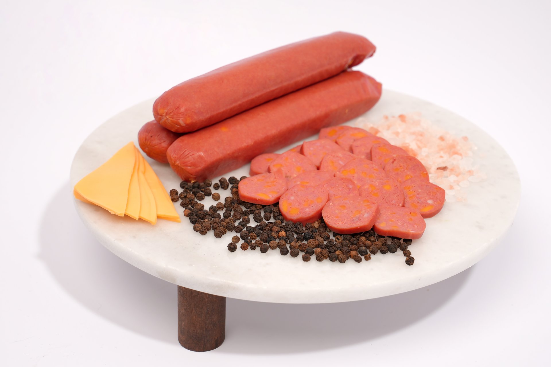 Mert Göçmenler kalitesiyle üretilen Cheddarlı Frankfurter, iç dolgusunda gerçek cheddar peyniri barındıran, özel baharatlarla harmanlanmış nefis bir sosis alternatifidir. İster kahvaltıda ister hızlı bir atıştırmalık olarak tüketin; içindeki akışkan cheddar peyniri ile damakta iz bırakır.