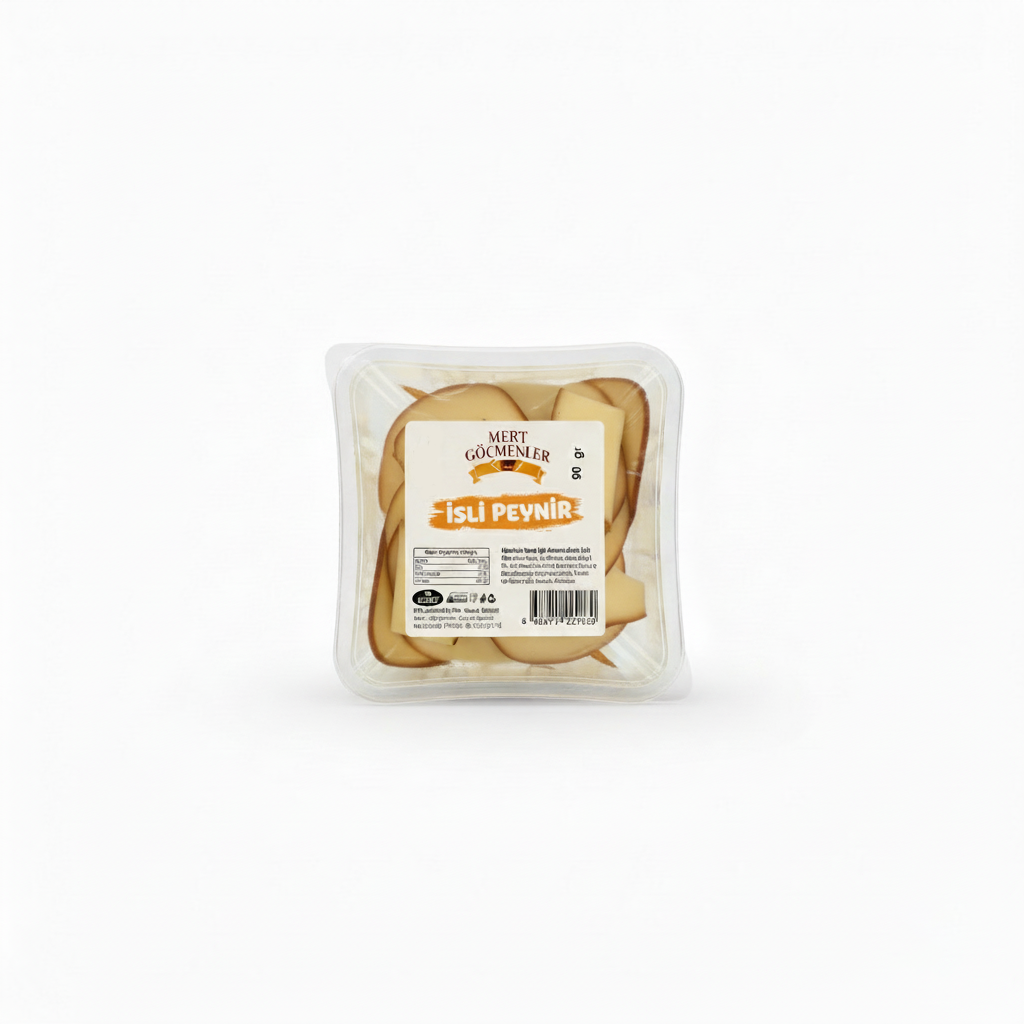 Mert Göçmenler’in Dilimli Isli Peynir ürünü, doğal sütle üretilmiş, hafif tütsülenmiş aromasıyla öne çıkan gurme bir peynir çeşididir. İnce dilim formatı sayesinde hem hızlı kullanım sağlar hem de şık sunumlardaki yerini kusursuz şekilde alır.